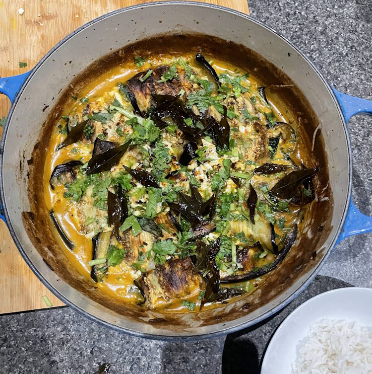 Paneer stuffed eggplant rolls in lentil dal ⭐⭐⭐⭐ (from Flavour)